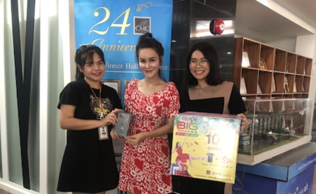 ขอแสดงความยินดีกับลูกค้าผู้โชคดีที่ได้รับรางวัลรวมมูลค่ากว่า 1 ล้านบาท จากแคมเปญ “CMC BIG THANKS” และขอขอบคุณลูกค้าทุกท่านที่ไว้วางใจโครงการในเครือ CMC Group